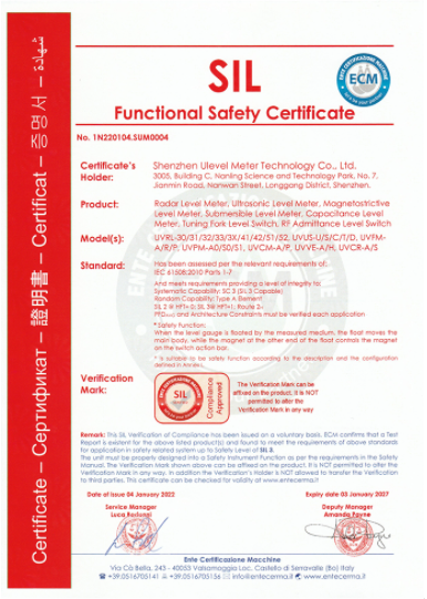 隨著工業(yè)化工領(lǐng)域的工廠對儀表的安全要求越來越高,避免由于設(shè)備或者管理造成的生產(chǎn)安全事故的發(fā)生,采購單位對儀表的質(zhì)量以及安全等級越來越重視?;跐M足不斷變化的市場需求,公司研發(fā)部門技術(shù)人員于2020年12月陸續(xù)開始整理物位儀表全系列產(chǎn)品的資料并送審檢驗,經(jīng)過專業(yè)機構(gòu)的對產(chǎn)品的材料審核,最后于2022年1月份成功通過認(rèn)證,取得SIL3等級認(rèn)證證書。