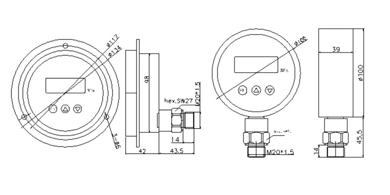 通用型壓力變送器尺寸圖
